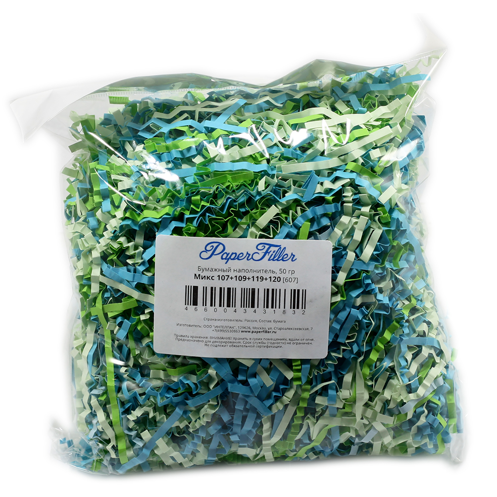 Бумажный наполнитель Микс зеленый, синий, голубой, 50 гр
